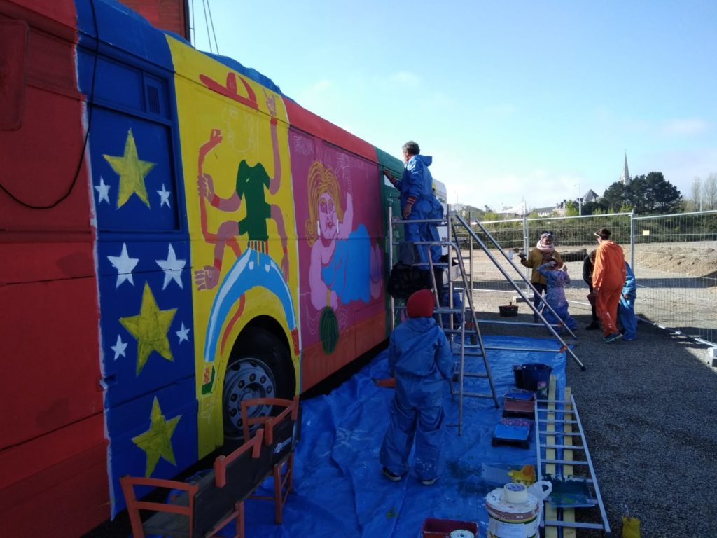 Aujourd’hui, il a quitté le parking de la Ressourcerie de l’Île pour s’installer sur le site des anciens abattoirs dans l’objectif d’être transformé en boutique fixe de Transfert. La décoration du véhicule est confiée à l’artiste David Bartex avec la complicité de l’équipe de Pick Up Production. Pendant trois jours, il a réalisé une fresque collective avec le soutien de l’association Comige et des enfants du camp rom voisin de Transfert. Cette oeuvre collaborative représente une galerie de personnages de foire, inspirés de l’univers forain et nomade ; ceux qui font de leur différence une force :