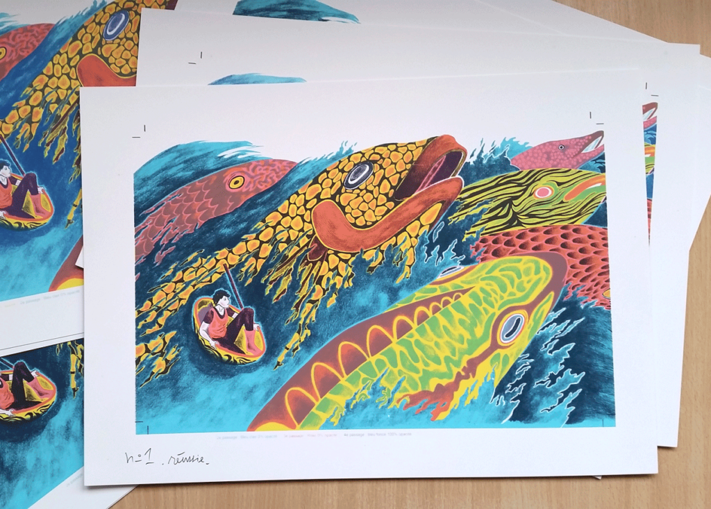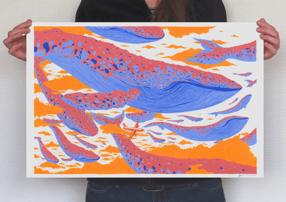 Nantaise d’adoption, la jeune artiste réalise depuis 2015 des illustrations pour la presse, des posters en sérigraphie ou des gravures. Entre auto-éditions et collaborations au sein des Editions Proches, son travail graphique tourne autour d’univers parallèles et de nuances de gris ravivées par des éclairs de couleurs.
