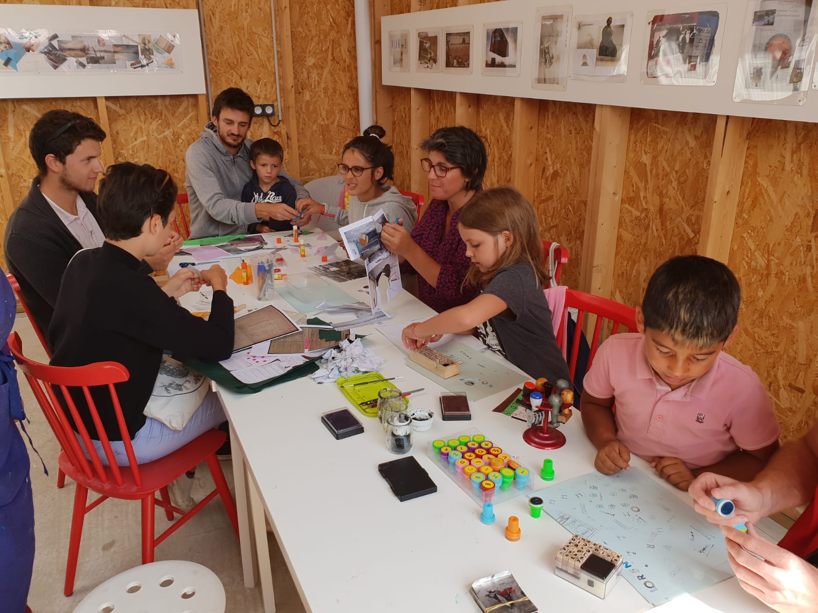 Dans la continuité de l’atelier Transfert d’archives, Le burô des correspondances a déballé son matériel pour un nouveau chantier participatif, “Transfert de souvenirs”, par la création de cartes postales réalisées sur place. Comment ? Écriture et collage à partir de documents à disposition sur place, ou d’autres collectées par vos soins in situ. Fabrique artisanale et collective de cartes postales donc, qui feront, qui sait, le tour du monde, de la main à la main.