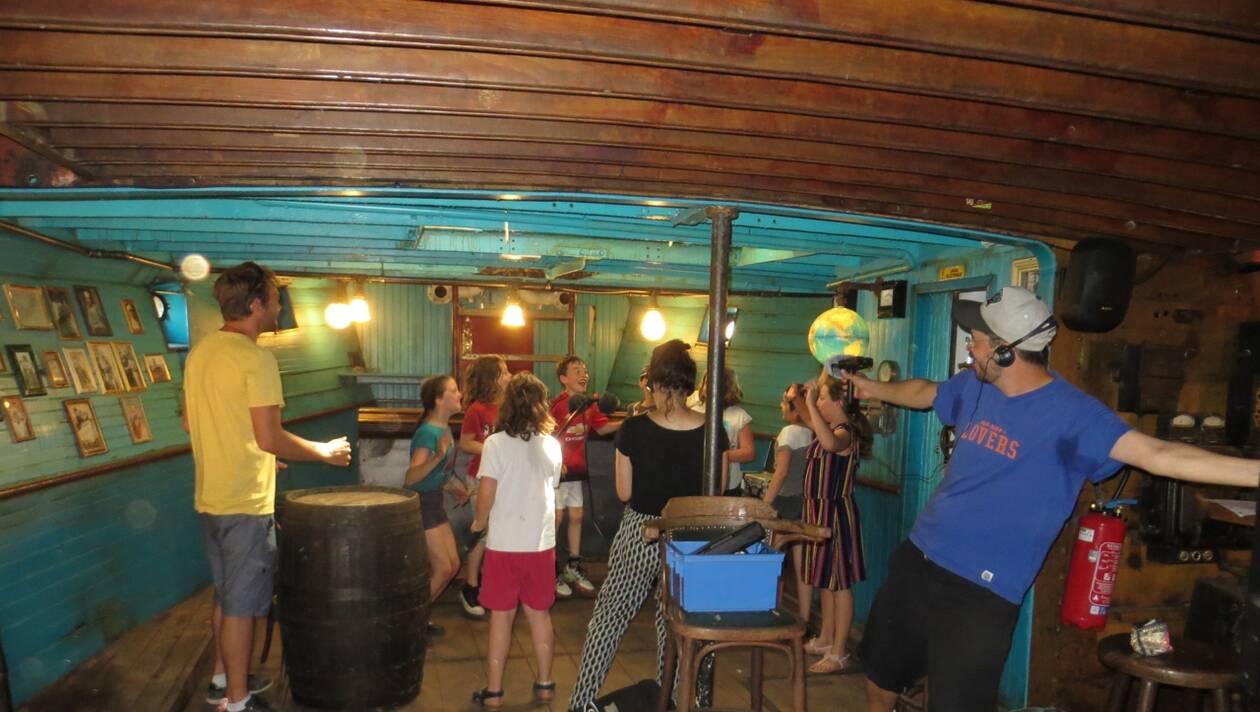 Une classe de CM1-CM2 de l’école Plancher de Rezé, a été invitée à réaliser une fiction sonore qui traverse les différentes vies du remorqueur. Guidés par Julien Barrault (Chilly Jay) et Mathilde Monjanel, ils ont découvert toutes les étapes de la réalisation : de l’écriture à l’interprétation, de la prise de son aux bruitages en passant par l’écoute des enregistrements sur le logiciel.