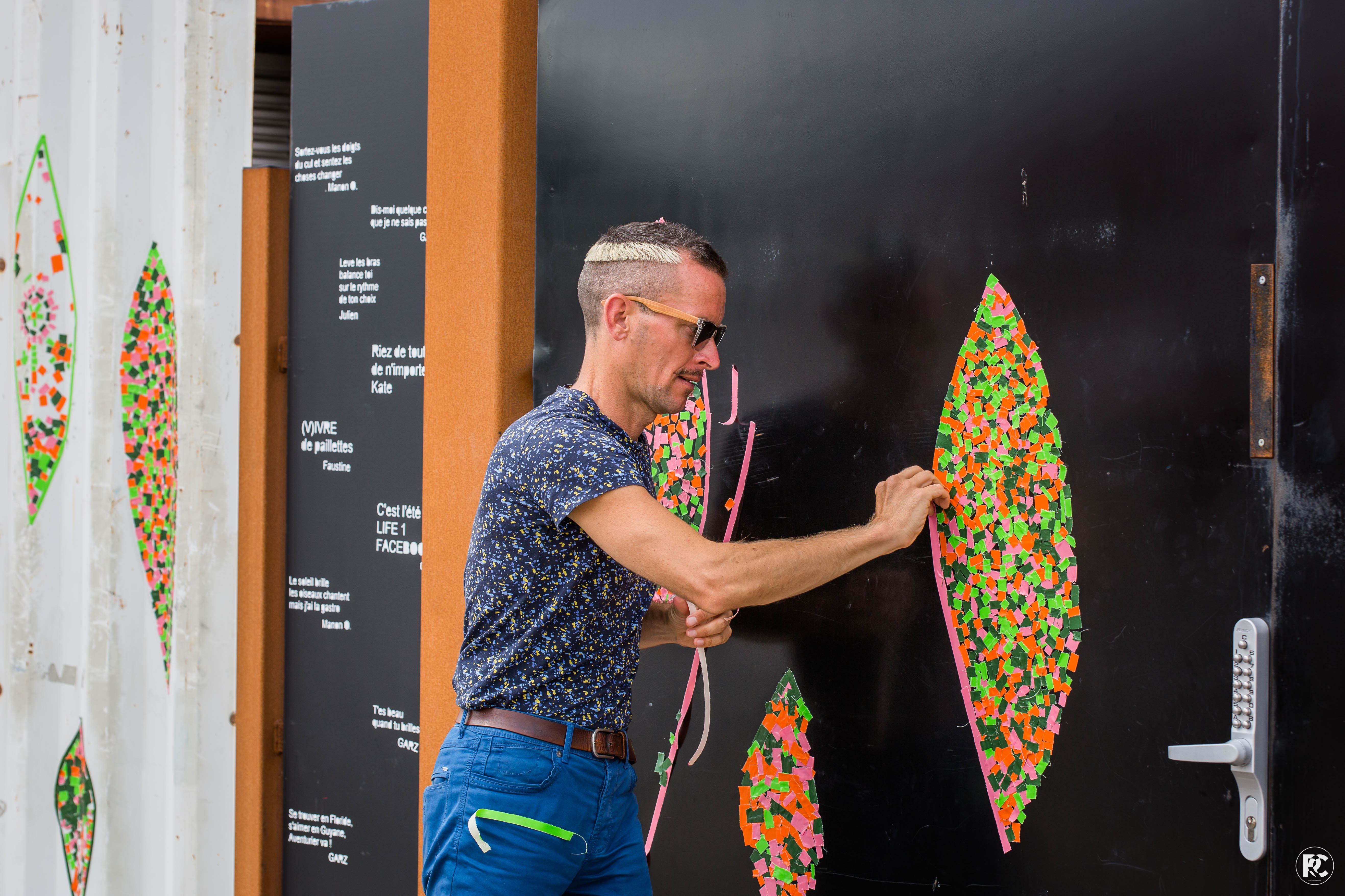 Si l’on doit trouver un propos à travers cette oeuvre, il est plus dans son vécu que dans sa finalité. Le vécu il est dans la rencontre, la participation des gens, la création d’un espace de liberté pour discuter, échanger, se faire des blagues. Le street art ici est presqu’un prétexte, un outil pour vivre tout cela. La finalité est dans le graphisme, les formes et les couleurs créées.