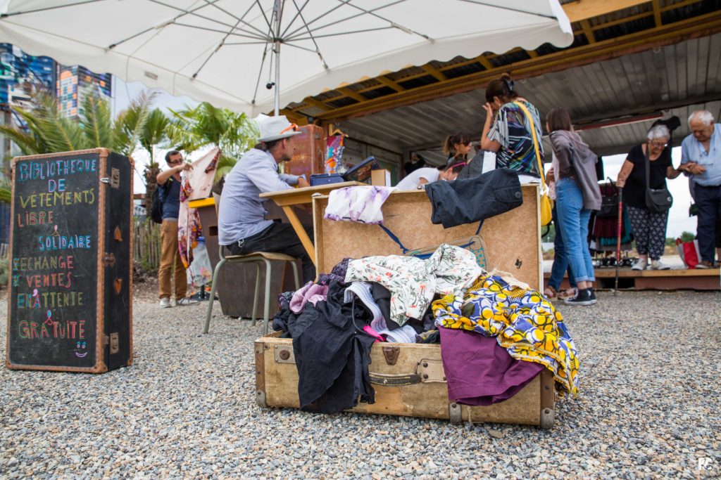 Au même titre, Les Nomades, friperie ambulante rezéenne proposait tous les jeudis une bibliothèque de vêtements basée sur l’échange matériel et humain. En plus du service classique de dépôt, vente ou achat de fripes, Les Nomades, en collaboration avec Le Carillon, permettent de mettre des vêtements en attente pour les personnes sans domicile fixe. Les Nomades, la friperie bon esprit.