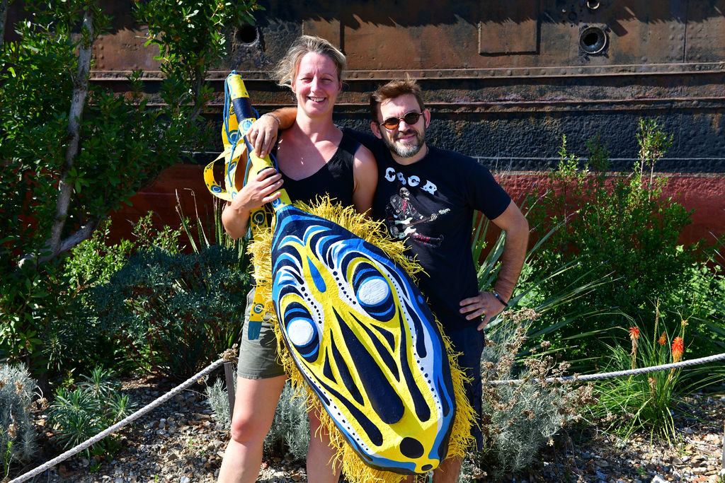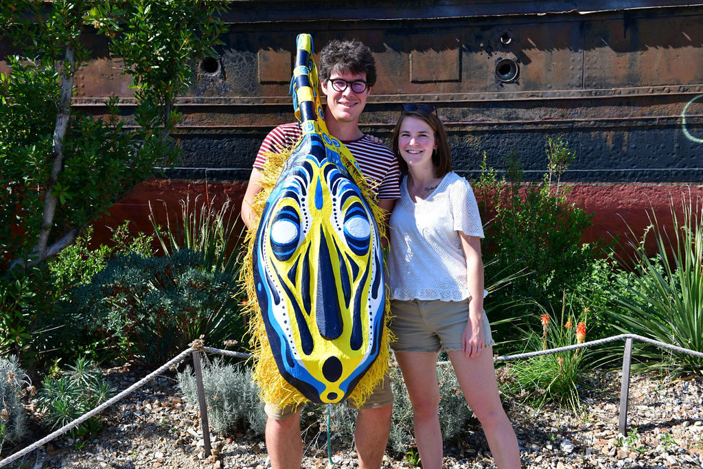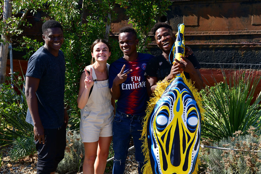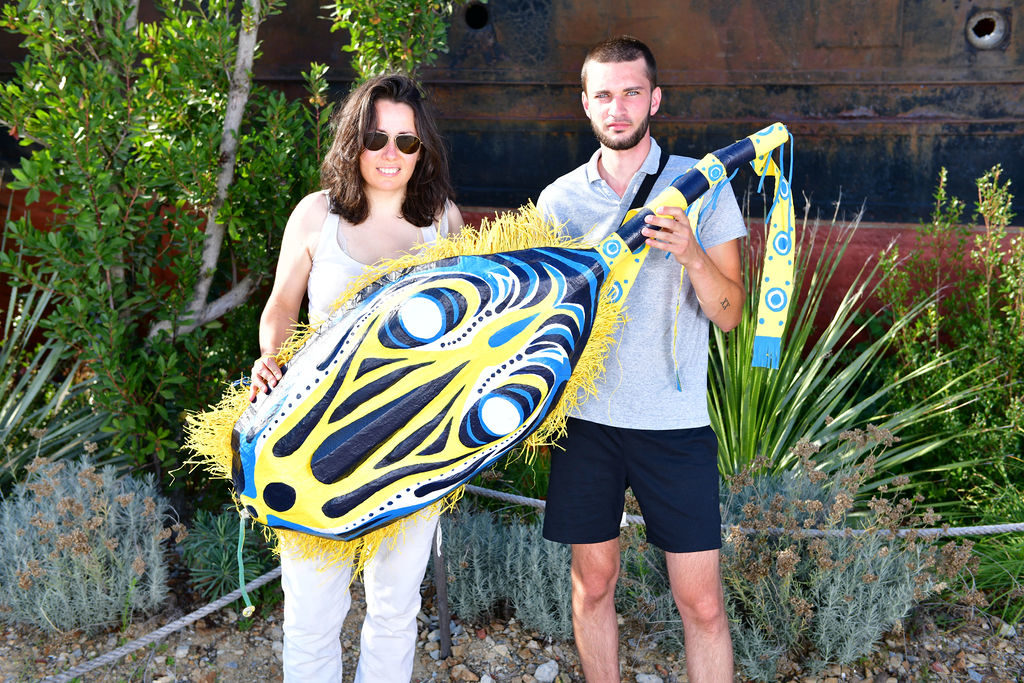 Le masque symbolise cette petite cité. Il a été imaginé et dessiné par l’auteure-illustratrice nantaise Amélie Patin, puis réalisé par David Bartex, artiste résidant à Transfert. Une partie des photos est disponible ci-dessous. L’intégralité dans le lien suivant.