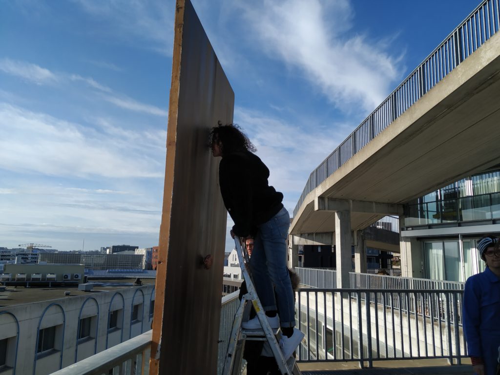 En janvier dernier, durant deux semaines, Transfert a été le terrain de jeu privilégié de futur·e·s professionnel·le·s de la scénographie et de l’art en espace public. Des étudiant·e·s du DPEA Scénographie de l’école d’architecture de Nantes et des apprenti·e·s de la FAIAR [formation supérieure d’art en espace public située à Marseille] ont travaillé ensemble à l’élaboration de parcours scénographiques en “stations orbitales” pour appréhender la friche sous tous ses angles. Transformations physiques ou symboliques, comment la mise en place d’une Traversée de Transfert peut renseigner sur son histoire, nourrir les strates du projet et révéler de nouveaux imaginaires ?