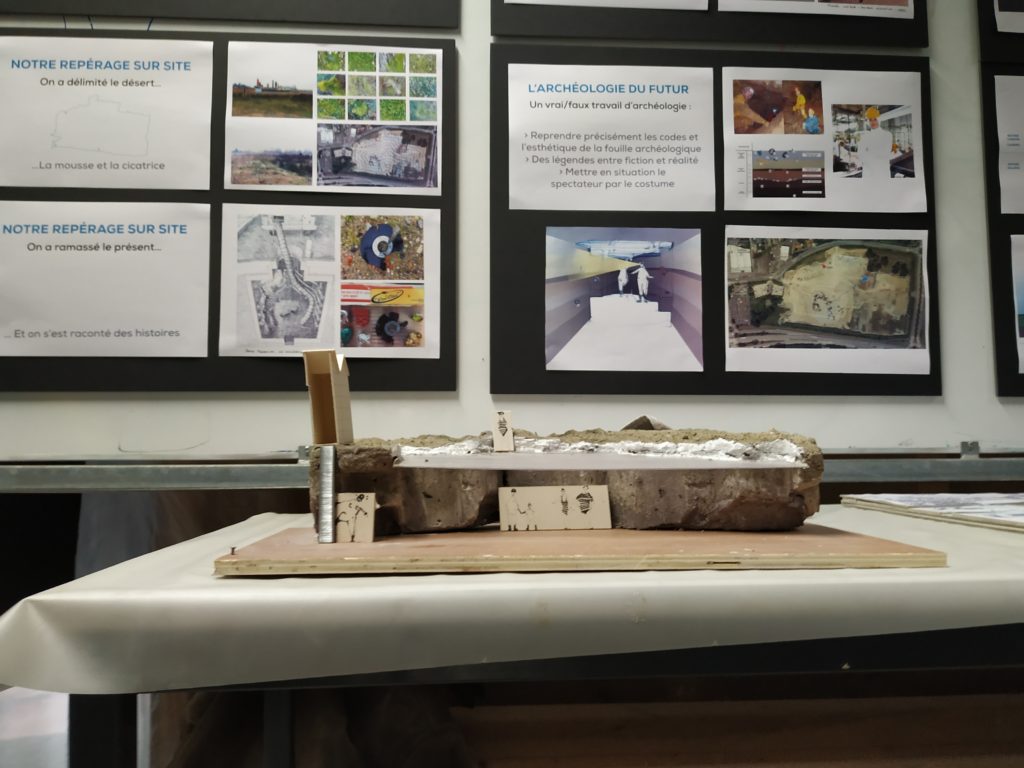 Un autre groupe s’est attaché à imaginer un « Terrain fertile », où le sol de la zone vierge aurait subi des forces contraires faisant référence au passé du lieu (abattoirs-mort/Transfert-vie). Dans ce scénario, une crête de plusieurs mètres de long est apparue dans la zone vierge. Elle laisse apparaître des failles (formes de hublots) à travers lesquels on peut voir l’autre côté avec des dispositifs de transformation visuelle.