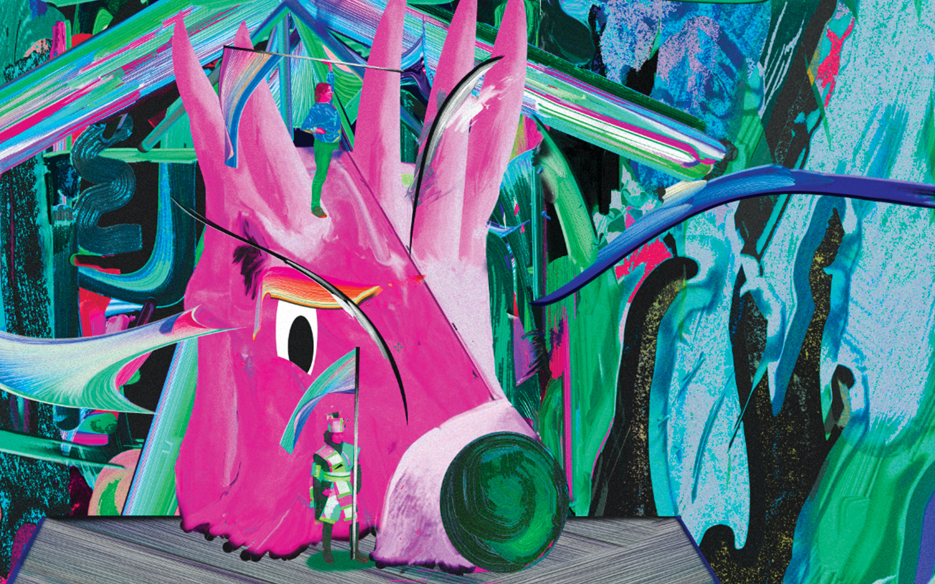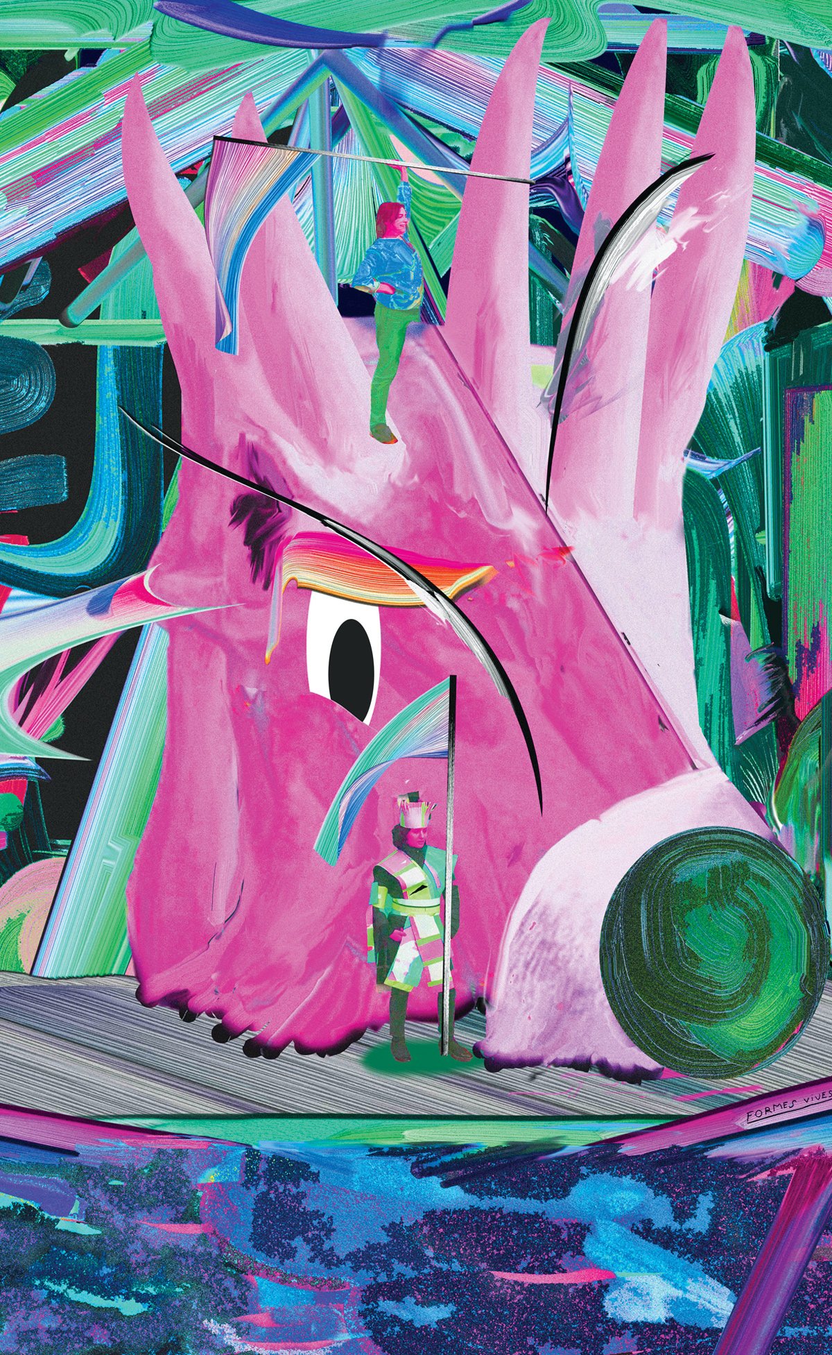 Le traitement graphique installe un univers de formes dynamiques, de fait-main et de peinture digitale, il y a du mouvement, une ambiance colorée entre jour et nuit, des matières organiques. Tout se sculpte, interagit ensemble comme dans une peinture. »