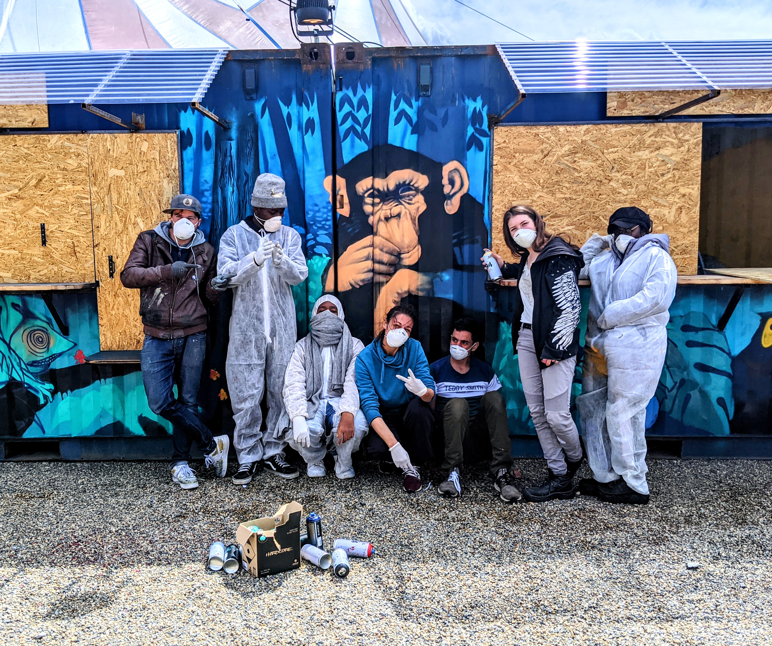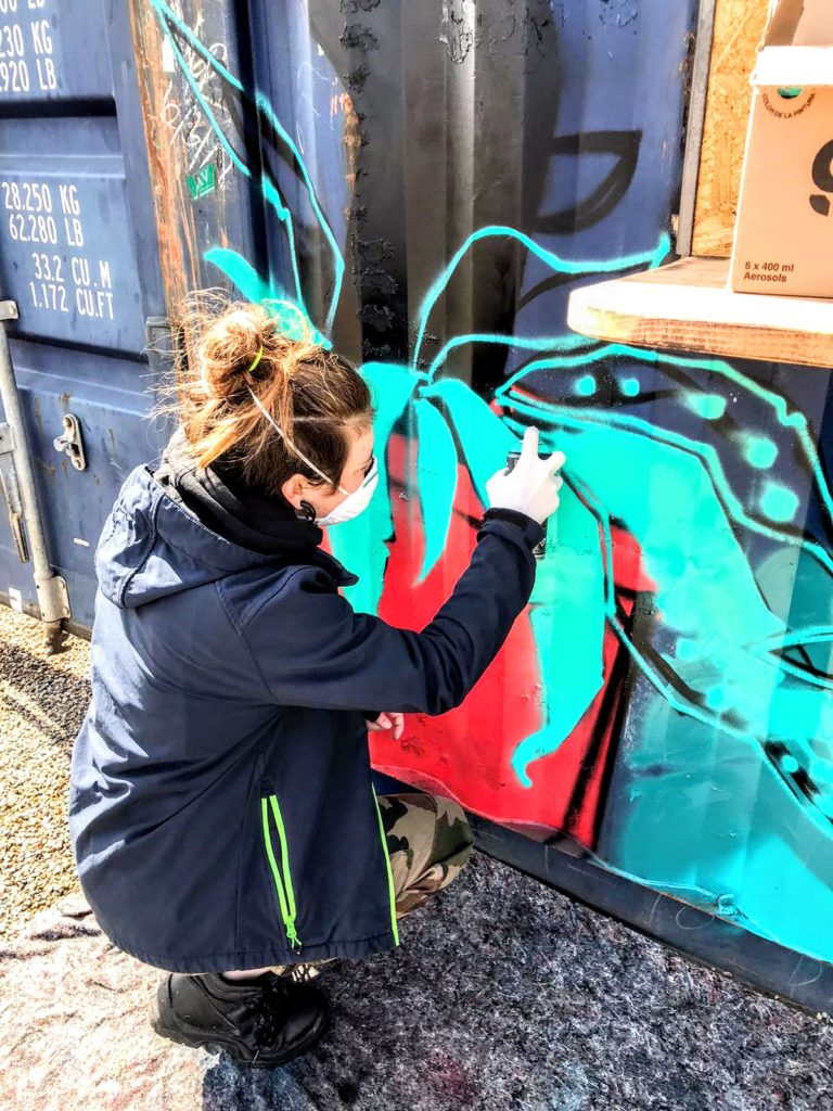 L’arrivée des nouveaux conteneurs de restauration à Transfert a permis de concevoir un projet artistique et participatif à travers le graffiti. Cette pratique permet d’aborder plusieurs problématiques liées à la jeunesse. A travers celle-ci, les jeunes peuvent s’interroger sur l’appropriation des espaces, la participation à la vie culturelle de leur quartier ainsi que l’ouverture aux autres.