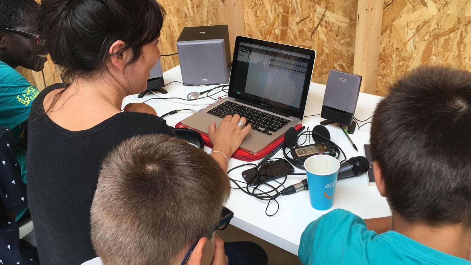 Transfert a été un lieu riche de paroles et d’histoires. Chaque semaine de l’été 2018, un groupe de jeunes issu des centres de loisirs de l’ARPEJ de Rezé s’est formé aux outils de captation et s’est lancé à la collecte de sons sur le site : interviews, illustrations sonore, bruitages… Accompagnés par Chilly Jay (Opus Bleu) et Mathilde Monjanel, ils ont abordé la création radiophonique sous un angle expérimental, pour restituer ce que nous ne voyons pas…
